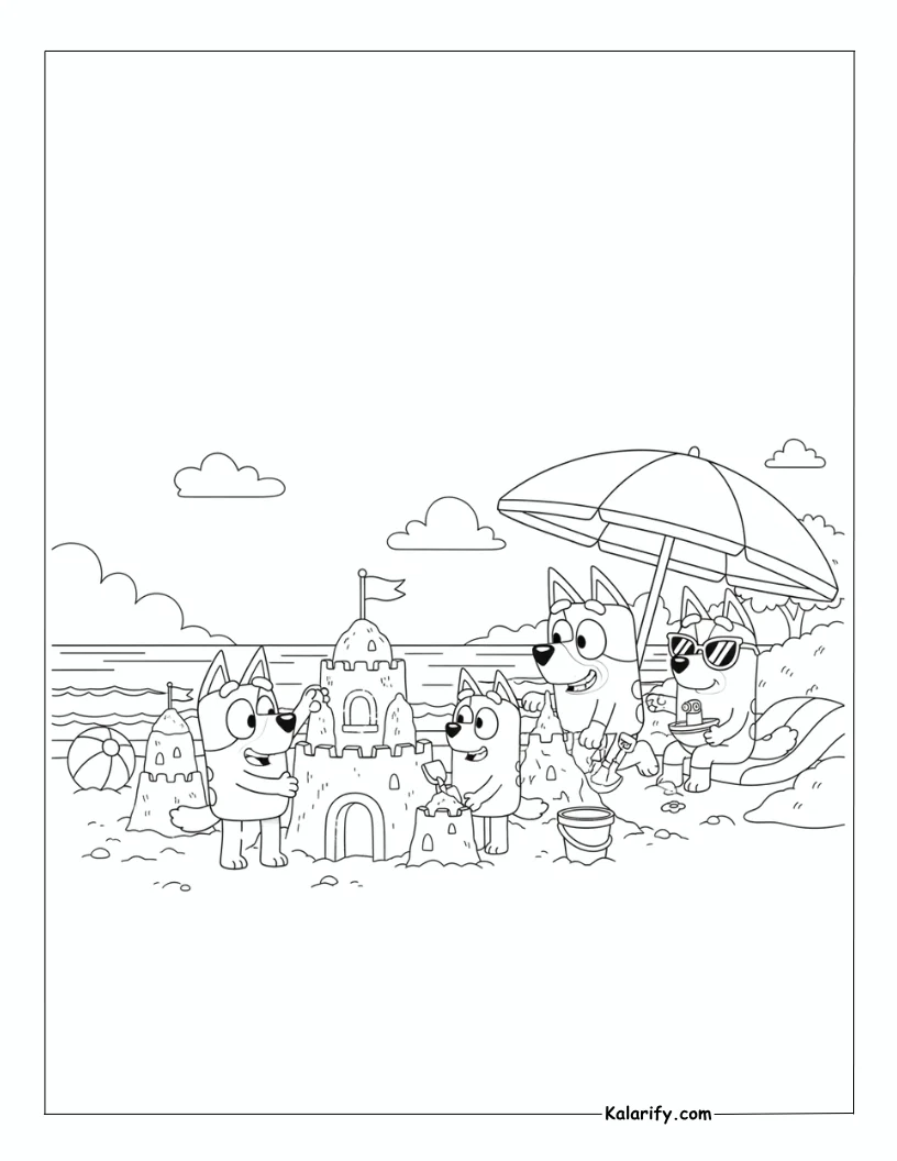Be the first to review “Bluey building beach sandcastles coloring page”