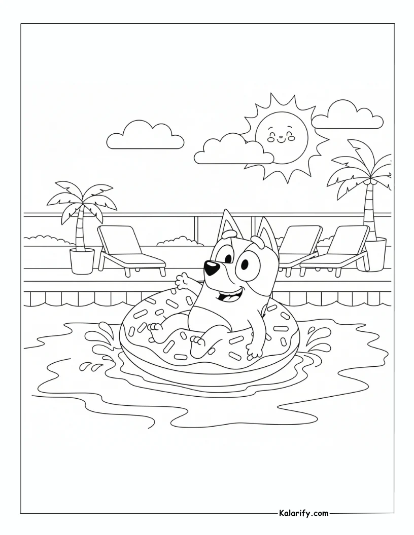 Be the first to review “Bluey floating on ring in pool coloring page”