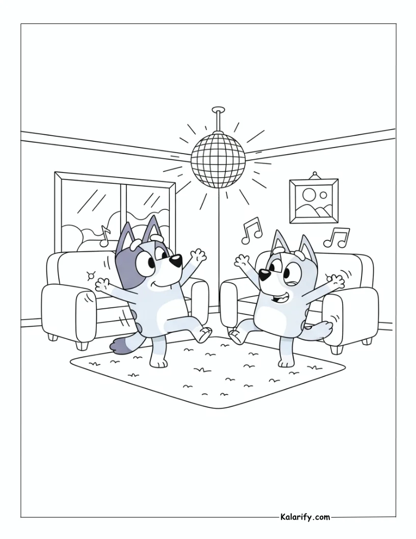 Be the first to review “Bluey having a dance party coloring page”