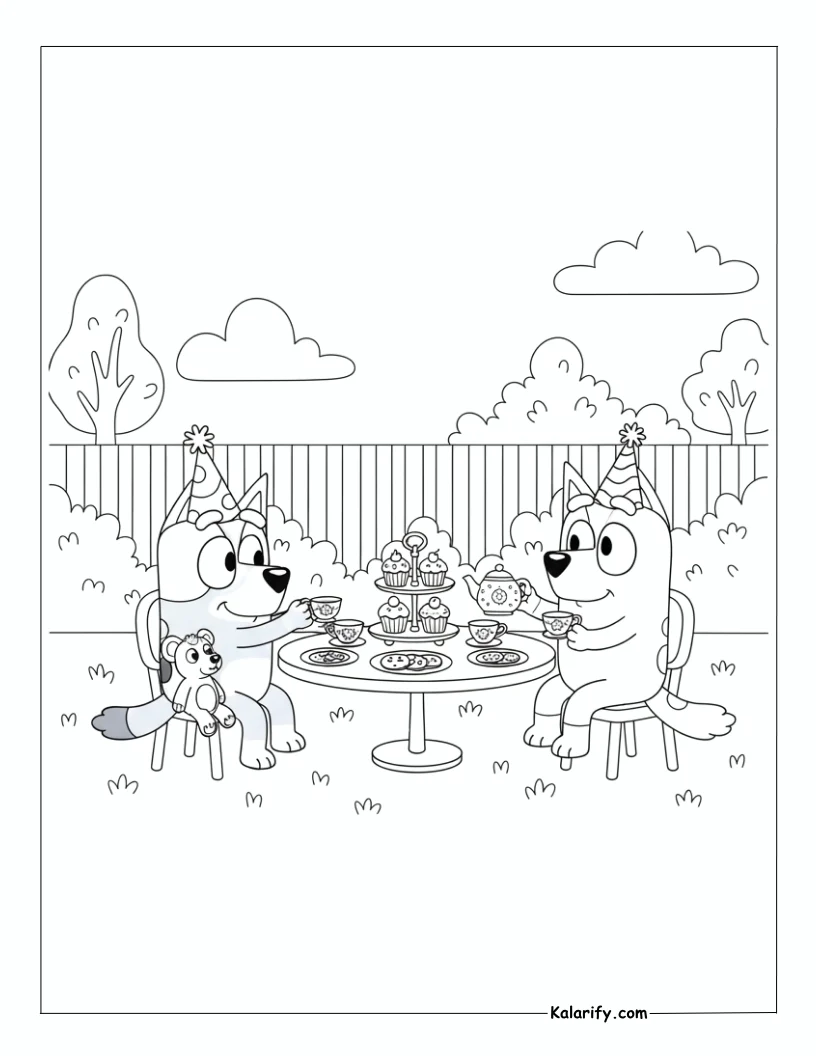 Be the first to review “Bluey having a tea party coloring page”