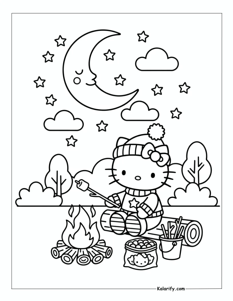 Be the first to review “Hello Kitty enjoying a campfire coloring page”