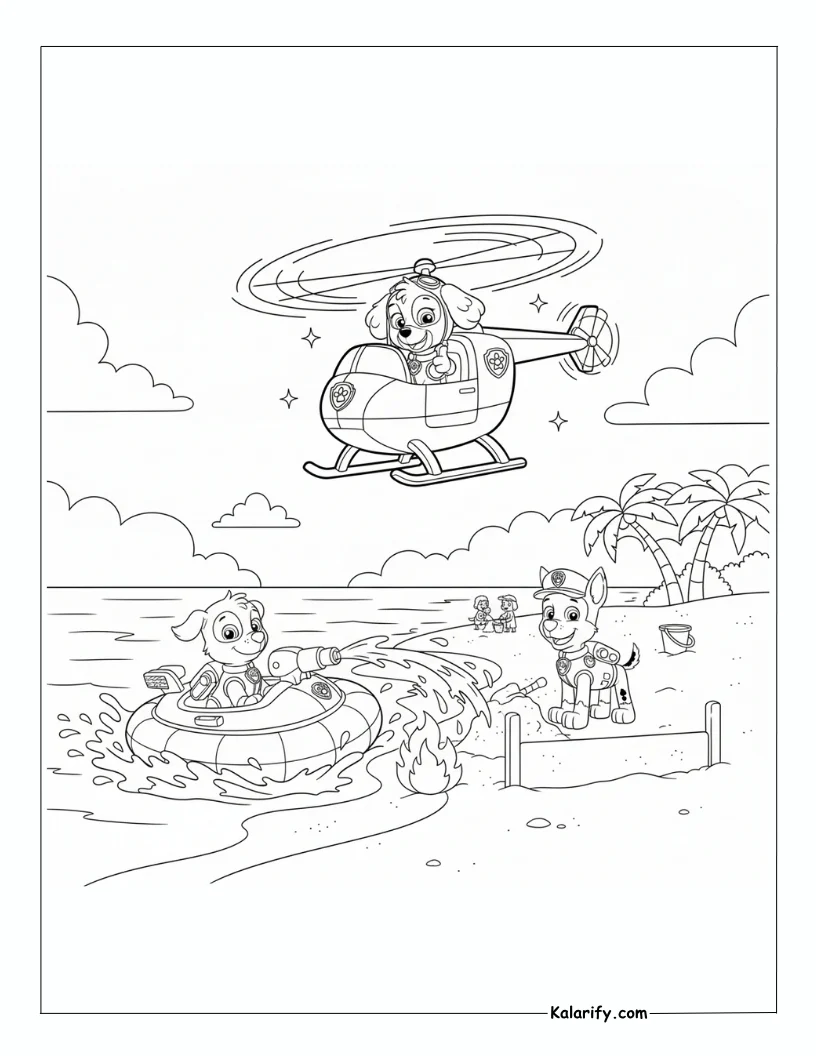 Be the first to review “Paw Patrol Zuma, Skye and Chase on a beach coloring page”