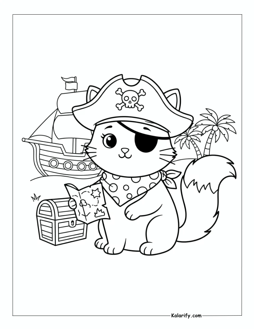 Be the first to review “Pirate Cat wearing a hat and eye patch coloring page”