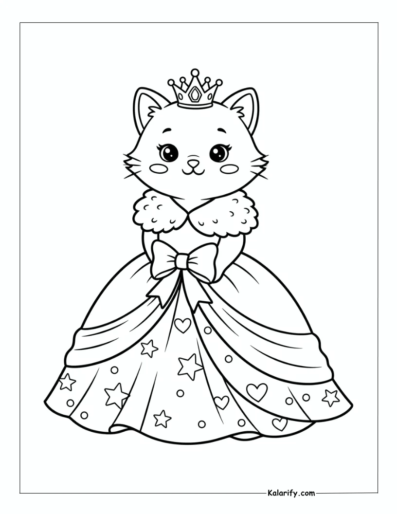 Be the first to review “Princess Cat wearing a crown and cute dress coloring page”