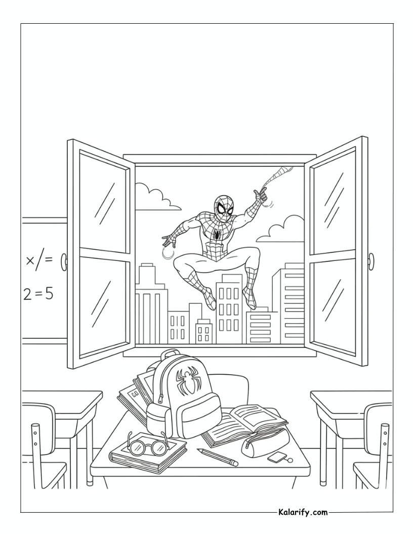 Be the first to review “Spiderman swinging outside coloring page”